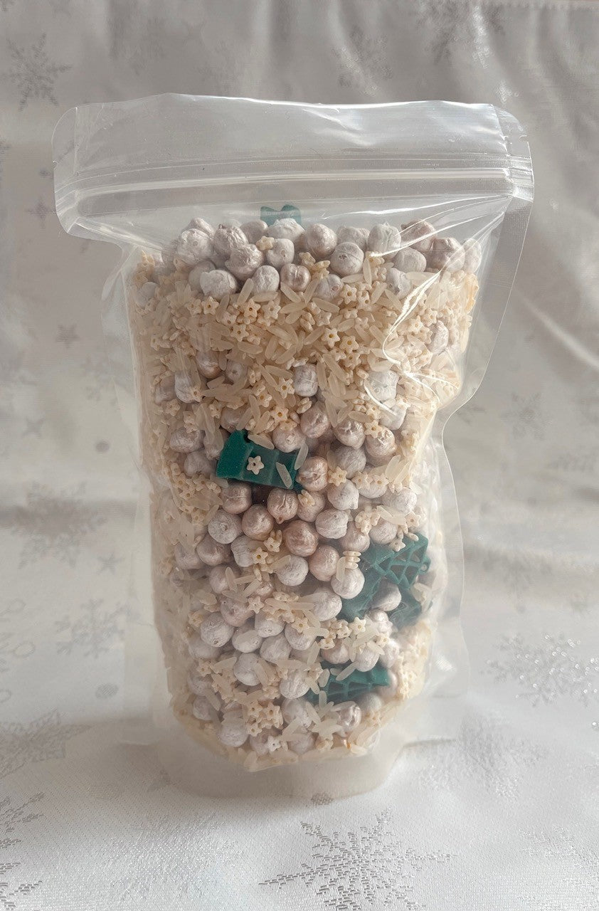 This festive set has endless play possibilities! Use the 3D printed track pieces for any of your trains and vehicles. Place the tray in the middle and fill with sand, sensory filler or playdough for added sensory fun. Plus there are adorable 3D printed loose parts including a train, stopwatch and ticket booth to add to this holiday train play! Option to add on 2 cups of our Frosted Forest sensory filler. Full set DOES not include sensory filler.