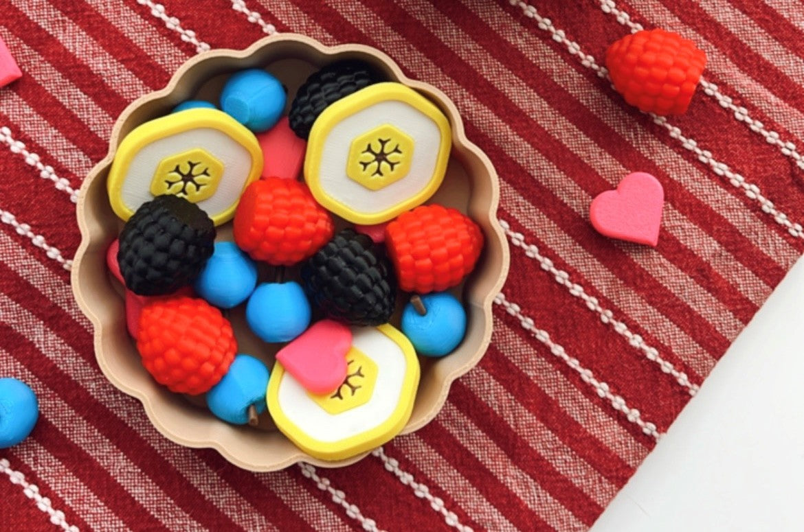 This adorable set includes a 3D-printed tart shell and 3D printed fruit and heart pieces. Littles can use the included dough to make their very own sweetheart fruit tart.