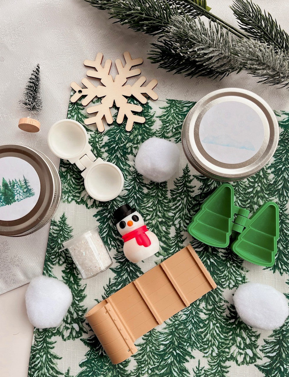 Who doesn't love to go sledding in the snow?! This Toboggan Playdough kit contains two jars of playdough, a 3D printed toboggan and snowman friend, snow sprinkles, pom pom snowballs and more!